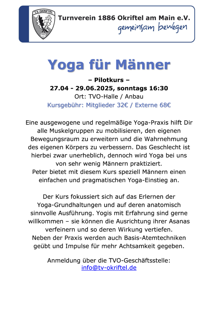 Für alle Yoga Kurse ist eine Anmeldung erforderlich.
