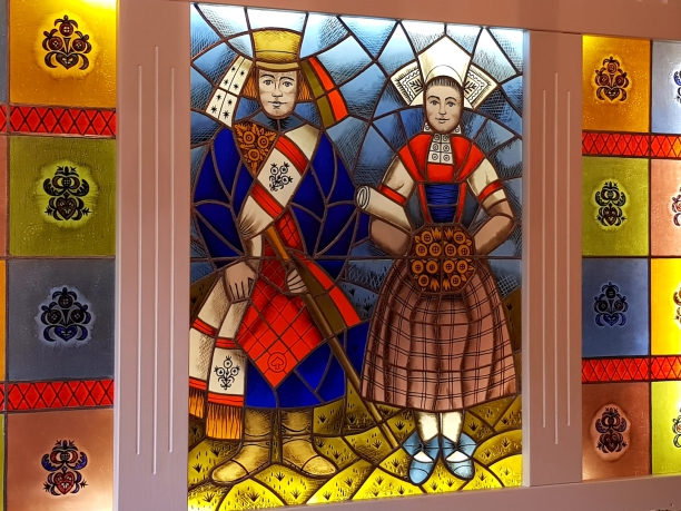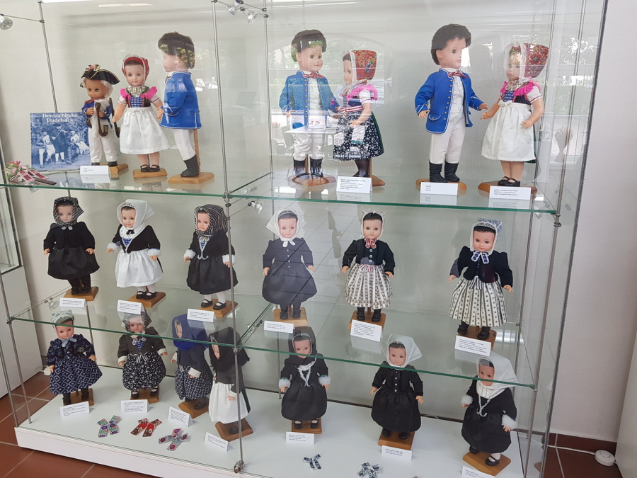 Hier im sorbischen Kulturzentrum in Schleife wurden uns die Unterschiede in der traditionellen Kleidung von sorbischen Frauen erklärt. Auch das Verzieren von