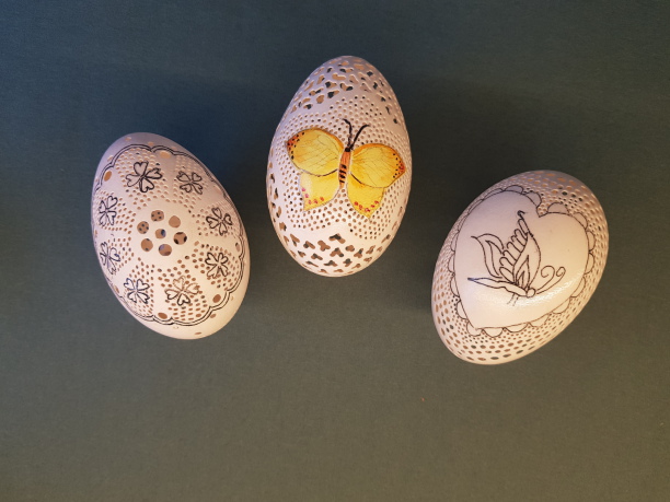 Nandu Eier mit Löchern und Bemalung