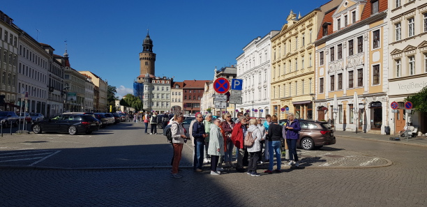 „Die Reiche“ trug. Wir erlebten bei einem geführten Stadtrundgang durch die alte Handelsstadt im Dreiländereck Tschechien, Polen und Deutschland die Blumenuhr, den großen Markt und die