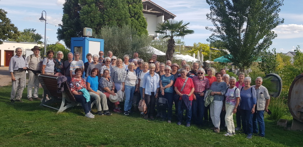45 Wanderfreunde und Gäste nahmen am diesjährigen Ausflug teil. Die Tour führte wieder nach Rheinhessen und zwar nach Flörsheim-Dalsheim. Wir besuchten das Weingut Engel (inkl. Weinverkostung) und besichtigten die den Ort umfassende Fleckenmauer. Auch der Insidertipp Cafe Augenwaide in Dalsheim fand großes Interesse.