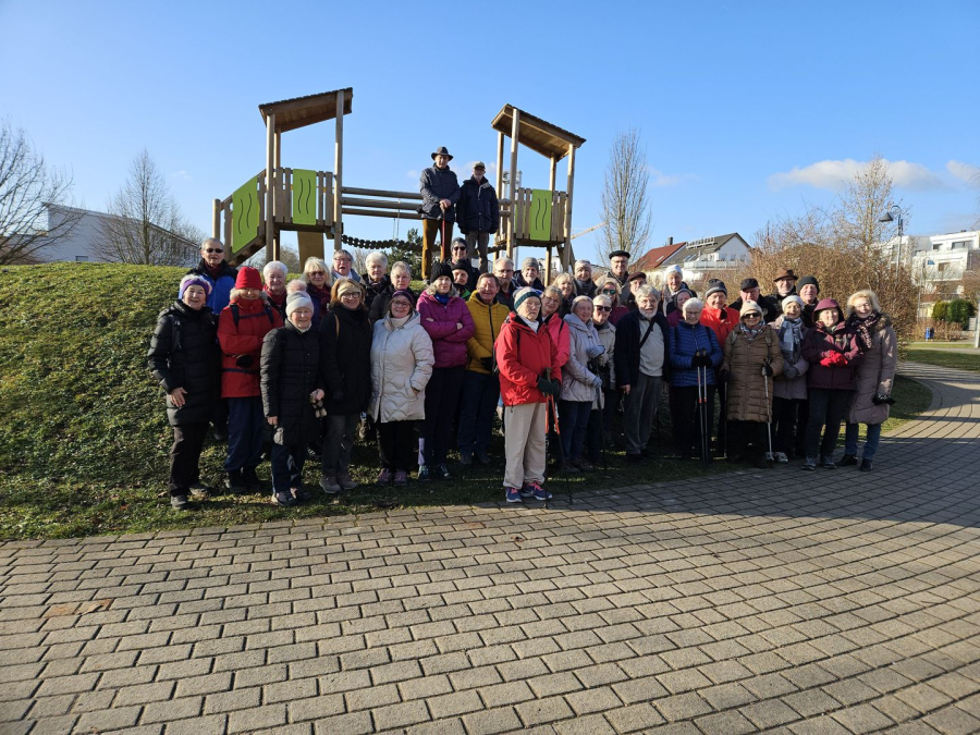 Zur Eröffnungswanderung 2025 trafen sich 40 aktive Wanderfreunde und nahmen die 6 km lange Runde um Okriftel bei bestem Wanderwetter in Angriff.