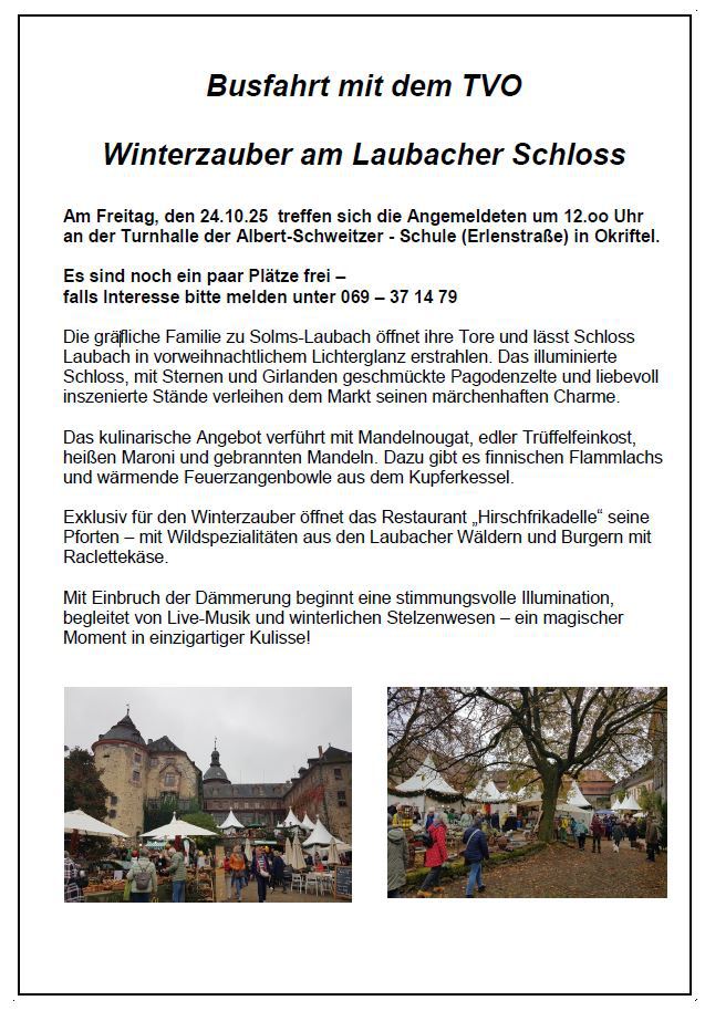 Busfahrt zum Winterzauber am Laubacher Schloss
