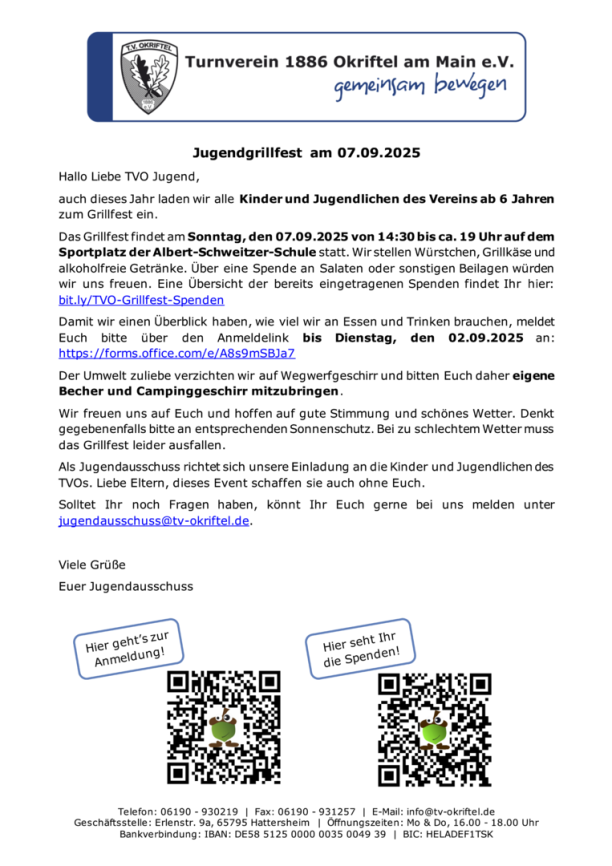 Am Sonntag, den 07.09.2025, war es wieder so weit und der Jugendausschuss lud alle Kinder und Jugendliche des Vereins zum Grillfest auf den Sportplatz