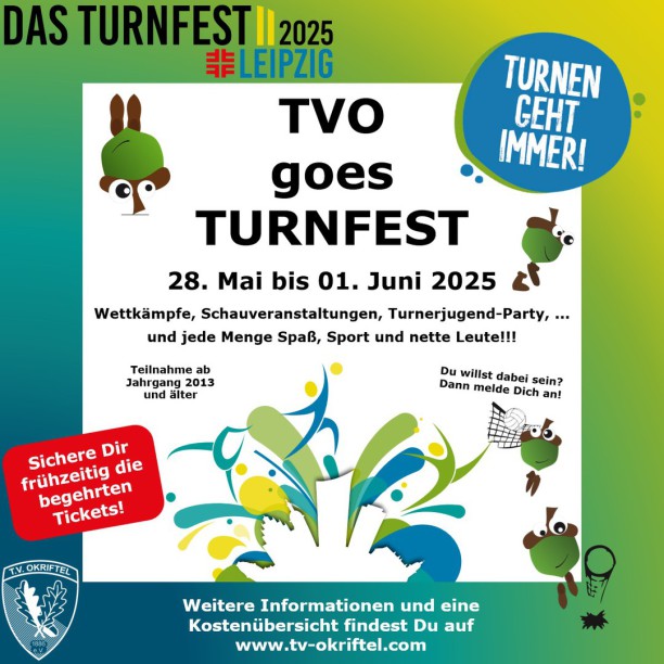 In diesem Jahr fand das Internationale Deutsche Turnfest vom 28.05. bis 01.06.2025 in Leipzig statt. Der TVO war wieder mit einer großen Truppe vor Ort vertreten.