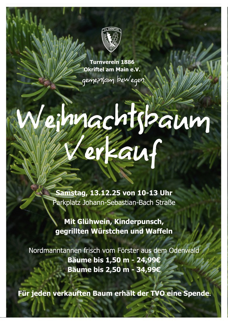 Holt Euch Euren Weihnachtsbaum wieder beim TVO. Genießt dabei einen warmen Glühwein und leckere Waffeln.